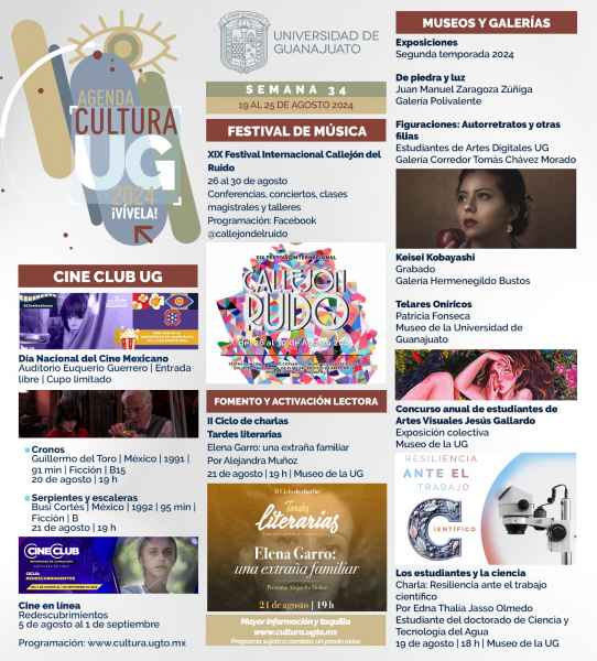 Programación sujeta a cambios sin previo aviso. Mayores informes y accesos a eventos, en la página web www.cultura.ugto.mx.