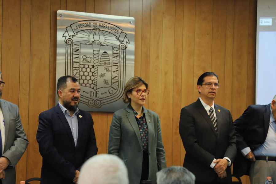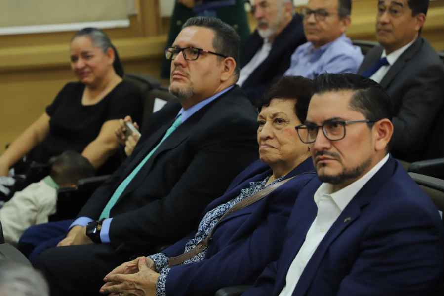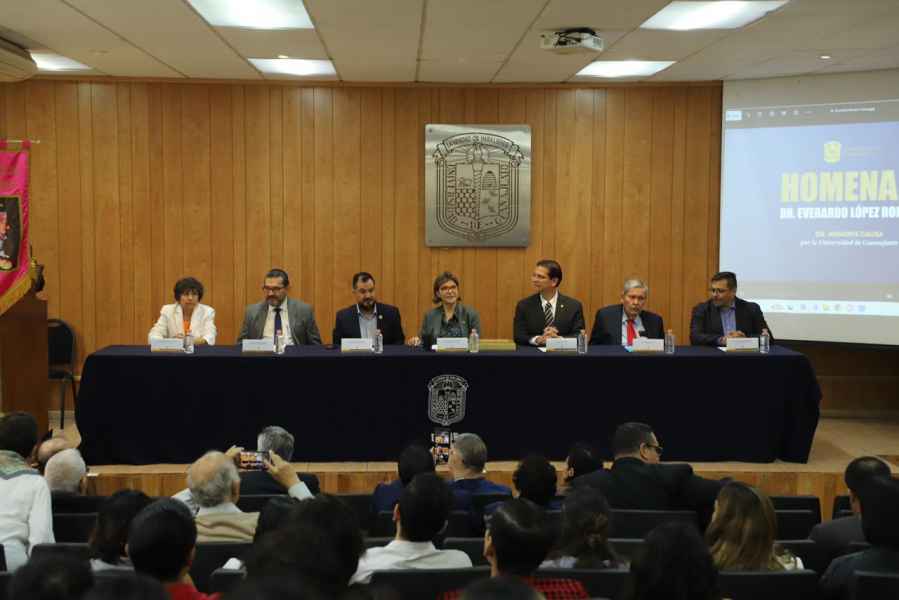“Honremos a nuestros orígenes y uno de ellos está sentado en esta mesa y recibe un muy merecido reconocimiento por toda una trayectoria”, señaló la Dra. Claudia Susana Gómez López, Rectora General de la UG, al encabezar el acto de homenaje por jubilación de uno de los profesores universitarios más destacados y queridos por su comunidad.