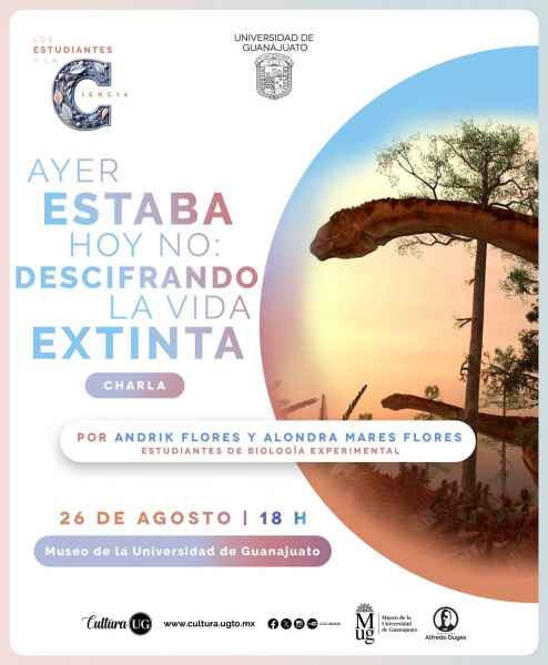 En este mismo recinto se presentará “Ayer estaba hoy no: descifrando la vida extinta”, charla impartida por Andrik Flores y Alondra Mares Flores, estudiantes de Biología Experimental el 26 de agosto a las 18:00 horas.
