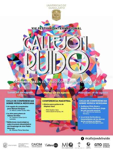 Continuarán las diversas actividades de la XIX edición el Festival Internacional Callejón del Ruido, del 26 al 30 de agosto, un espacio abierto para la composición, difusión del conocimiento y un auténtico viaje a las últimas tendencias musicales, donde destaca la presencia de la maestra Abby Fisher, que impartirá talleres y clases magistrales a las y los jóvenes percusionistas, se presentará en concierto con dos obras de estreno; también se contará con el talento de Stephen Goss, miembro de la Royal Academy of Music del Reino Unido.