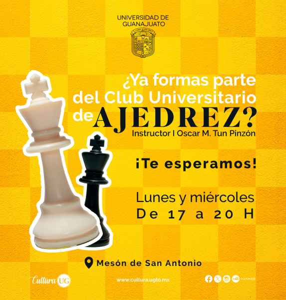 Finalmente, el Club Universitario de Ajedrez, invita al público interesado a participar los lunes y miércoles de las 17:00 a las 20:00 horas en el Mesón de San Antonio.