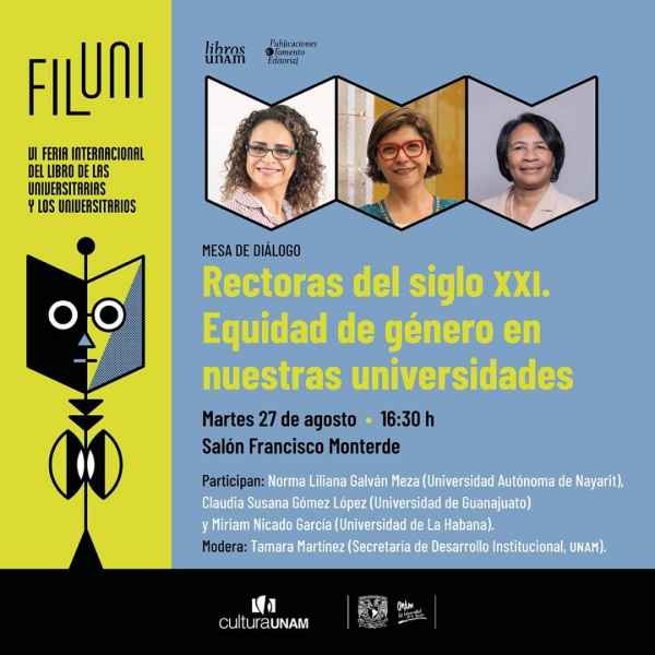 Cdmx, a 28 de agosto de 2024.- Desde la sexta edición de la Feria Internacional del Libro de las Universitarias y los Universitarios (FILUNI), organizada por la Universidad Nacional Autónoma de México (UNAM) se realizó una mesa de diálogo sobre las experiencias en las nuevas prácticas incluyentes y de equidad de género desde el eje “Rectoras del siglo XXI. Equidad de género en nuestras universidades”.
