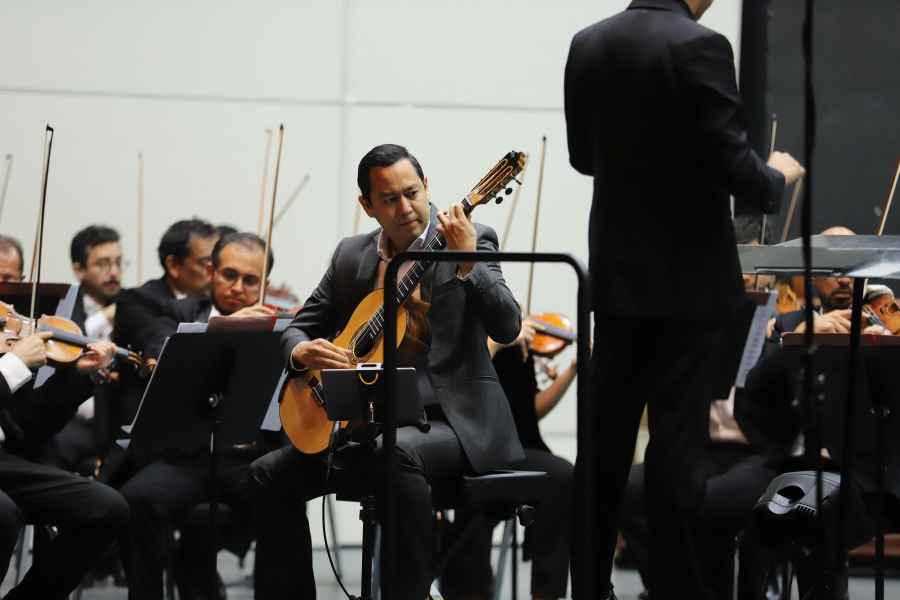 El músico guanajuatense Vladimir Ibarra deleitó a las y los asistentes con su participación en el estreno en México de “Concierto para guitarra”, de Stephen Goss. La obra, compuesta de tres movimientos, que aluden a la música urbana de los Estados Unidos, el lenguaje armónico del jazz moderno, mientras que el corazón del concierto es un movimiento elegiaco marcado por la nostalgia inglesa.