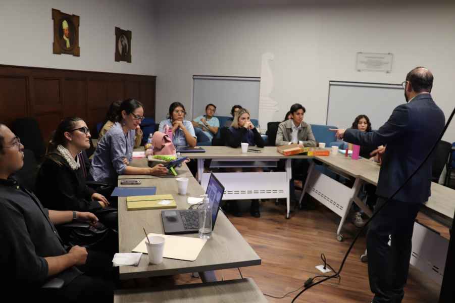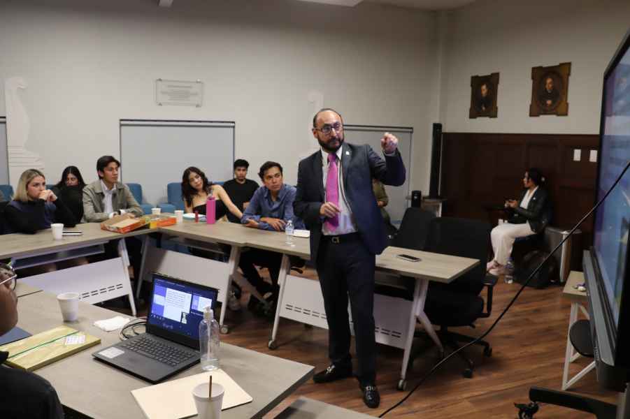 La conferencia ofrecida en el Pleno del Centro de Investigaciones Jurídicas del Edificio Central de la UG, fue impartida por el Mtro. Luis Alberto Estrella Ortega, titular de la Dirección de Investigación de la Procuraduría de los Derechos Humanos del Estado de Guanajuato (PRODHEG).
