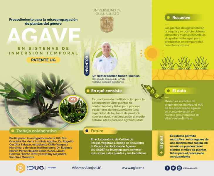 En entrevista con el Dr. Héctor Gordon Núñez Palenius, Profesor de Tiempo Completo (PTC) del Departamento de Agronomía en la División de Ciencias de la Vida del Campus Irapuato-Salamanca, y quien forma parte del equipo que obtuvo dicha invención, compartió que este desarrollo científico es un sistema para cultivar in vitro plantas de agave tequilana y otras especies.