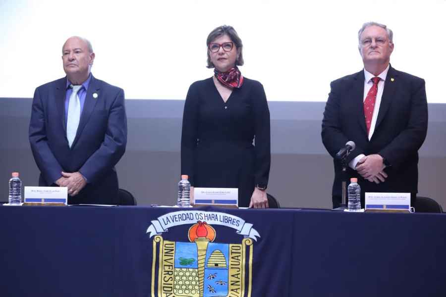 “Me comprometo con la comunidad del Campus a trabajar de manera conjunta y a comunicarme de una manera eficiente y efectiva para que juntos podamos trabajar y seguir logrando avanzar en todos los temas que tenemos pendientes. Pero también el compromiso es con nuestra comunidad local, nuestro entorno y es muy importante aquí la colaboración que tendremos con las instancias centrales de la Universidad para llevar el arte, la cultura y la ciencia a nuestro entorno inmediato”, Dr. Martín Picón Núñez, Rector de Campus Guanajuato.