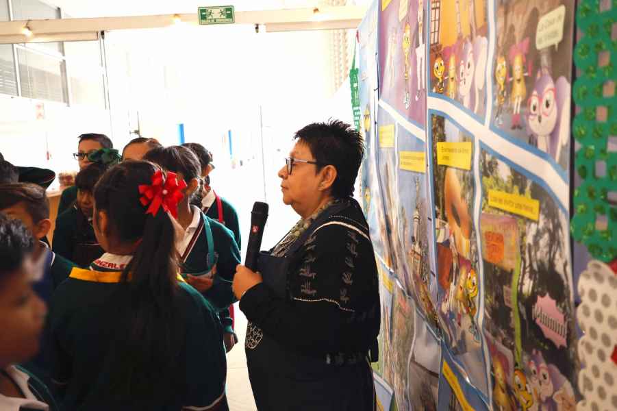 En su intervención, la Dra. Meneses explicó la importancia de que las y los niñas sepan y conozcan lo qué es el Patrimonio Cultural, dado que a través de algunas revisiones que realizó a los libros de texto de educación básica se dio cuenta de que solo en el nivel de tercero de primaria se incluía algo relacionado con este tema, por lo cual se dio a la tarea de crear al personaje “Patrimonia, Centinela del Patrimonio Cultural” junto con otros personajes que la acompañan en una historieta dirigida a las y los infantes de educación primaria.