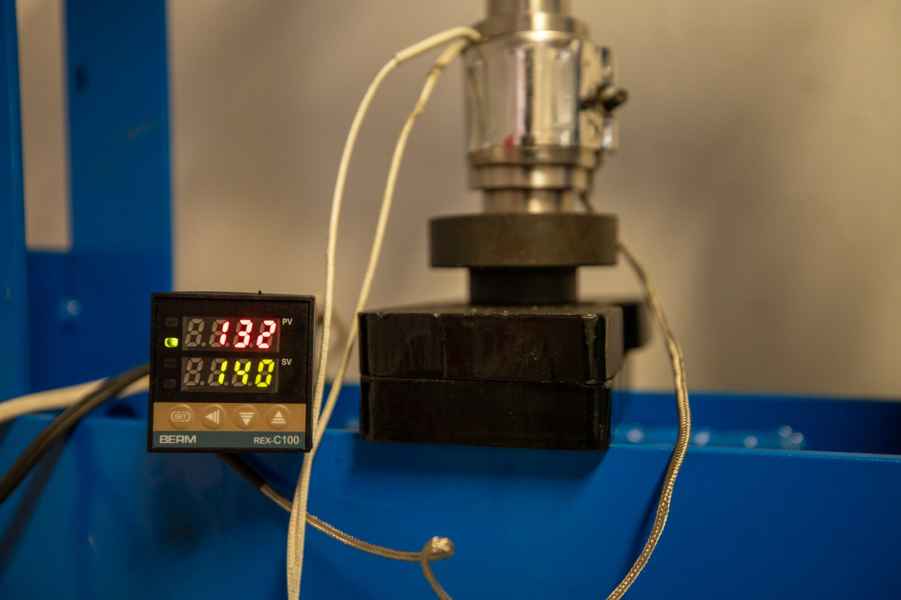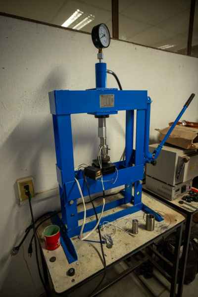 Este dispositivo se puede emplear en cualquier prensa hidráulica comercial. El calor es proporcionado a través de una banda de calentamiento, la cual es vigilada por un controlador de temperatura.