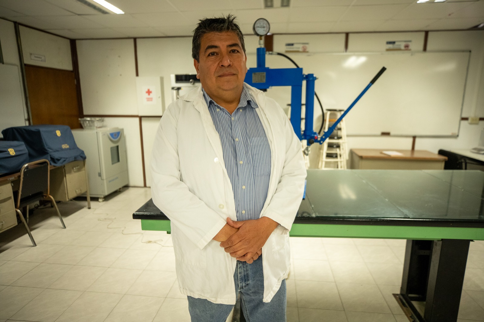 La presión se genera con equipo neumático e hidráulico y esta herramienta utiliza una prensa mecánica convencional, y si se decidiera cambiarla por una comercial se gastarían solo 8 mil pesos o se puede fabricar en un taller, explica el académico al enumerar las ventajas de la Montadora Metalográfica, que tiene varias aplicaciones, por ejemplo, en el área automotriz.