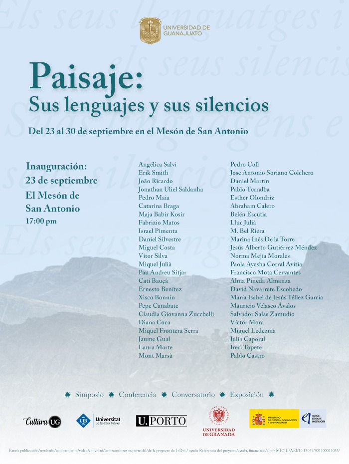 El evento inaugural será el 23 de septiembre a las 17:00 horas y se invita al público a participar en sus actividades. Dentro del programa, se incluyen dos conversatorios, “Paisaje: sus lenguajes” y “Paisaje: sus silencios”, además de una exposición gráfica aportada por cincuenta obras de investigadore(a)s españoles, portugueses y mexicanos.