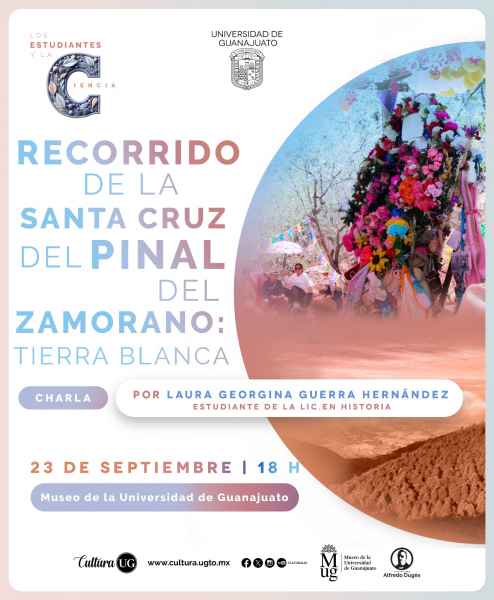 Para continuar las reflexiones sobre el patrimonio del estado, en el Museo de la UG se realizará la charla “Recorrido de la Santa Cruz del Pinal del Zamorano: Tierra Blanca”, a cargo de la estudiante de Historia Laura Georgina Guerra Hernández. El evento será el 23 de septiembre a las 18 horas.