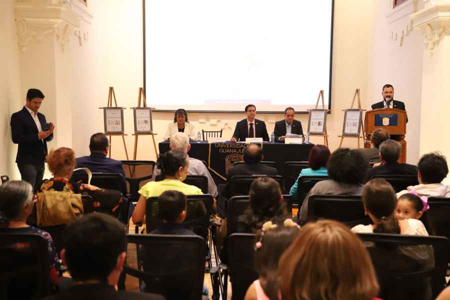 El evento celebrado en el Claustro Académico "Maestros Enrique Cardona Arizmendi y Cuauhtémoc Ojeda Rodríguez" del Edificio Central de la UG, estuvo presidido por el Dr. Salvador Hernández Castro, Secretario General de la Máxima Casa de Estudios del Estado, quien, en representación de la Rectora General, Dra. Claudia Susana Gómez López, hizo llegar su reconocimiento y admiración a las trayectorias de las personas condecoradas.
