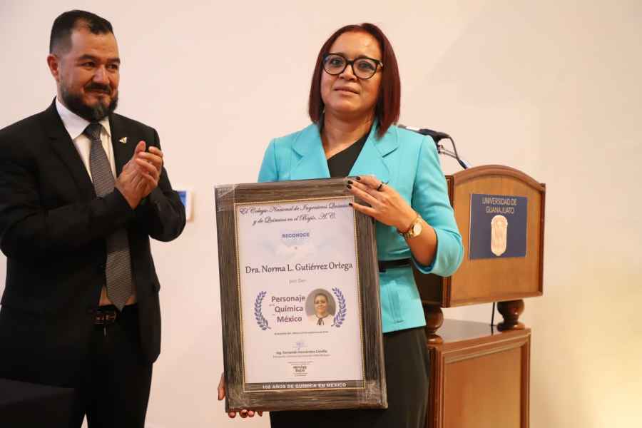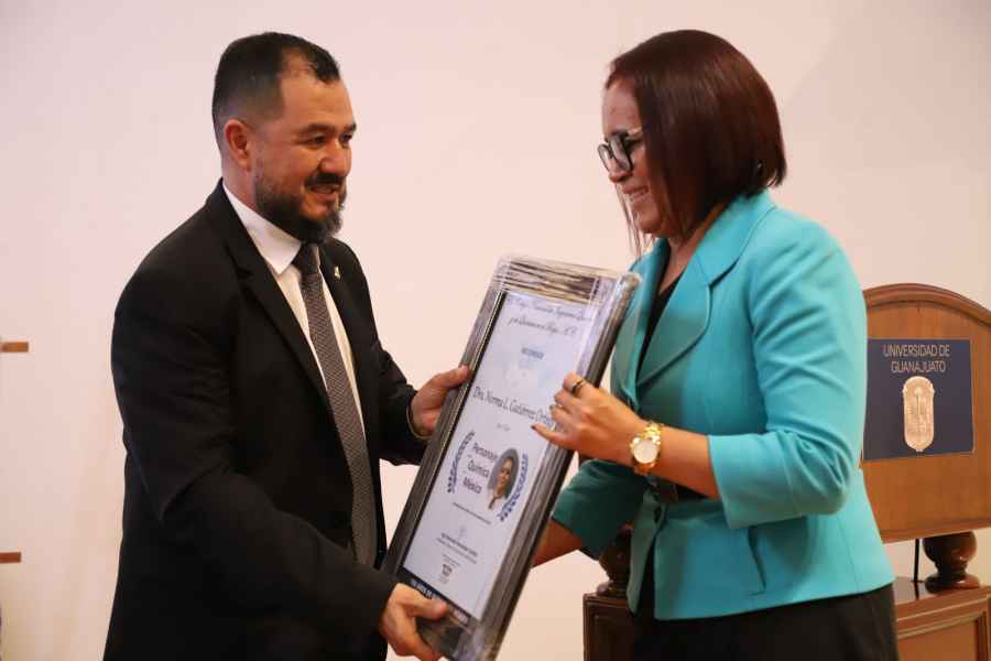 Asimismo, el Dr. Salvador, fue el encargado de dar lectura a la semblanza y entrega de reconocimiento de la Dra. Norma L. Gutiérrez Ortega, quien es una destacada profesora e investigadora de la Universidad de Guanajuato: “Para mí la química lo es todo, ha sido mi vida, mi hacer, mi andar, mi caminar, mi compartir, la química es mi pasión”, fueron parte de las palabras enmarcadas por la investigadora al recibir tal reconocimiento.