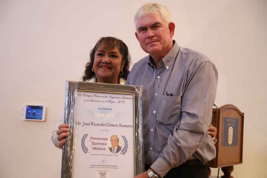 Mientras que, el Ing. Fernando Hernández Calvillo, hizo la lectura de semblanza y entrega de reconocimiento al Dr. Leonardo Álvarez Valtierra, también destacado profesor e investigador de la Universidad de Guanajuato: “Para mí la química también es toda una pasión, mucho de lo que he hecho y voy a hacer en el futuro tiene que ver con esta formación que adquirí desde hace un buen tiempo allá en Noria Alta”, recordó.