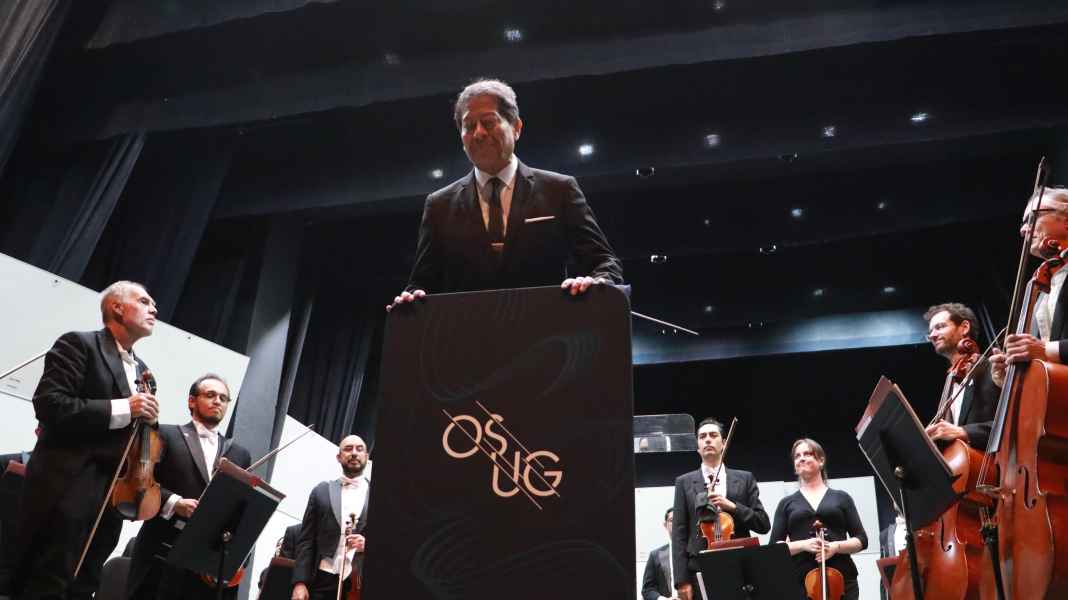 En este concierto, la mezcla perfecta fue la OSUG y Alfredo Ibarra a quien la crítica internacional lo define como “un director excelso y talento virtuoso por su dirección y por su excelente gusto en la selección de autores”. El perfil profesional de Alfredo Ibarra como director de orquesta presenta momentos interesantes, que se inician en el Conservatorio Nacional de Música, donde fue alumno de Istvan Horvath. Posteriormente hizo estudios de posgrado en el Conservatorio de Maastricht, Holanda, con Antón Kersjes y en Múnich, Alemania, con el legendario Sergiu Celibidache.