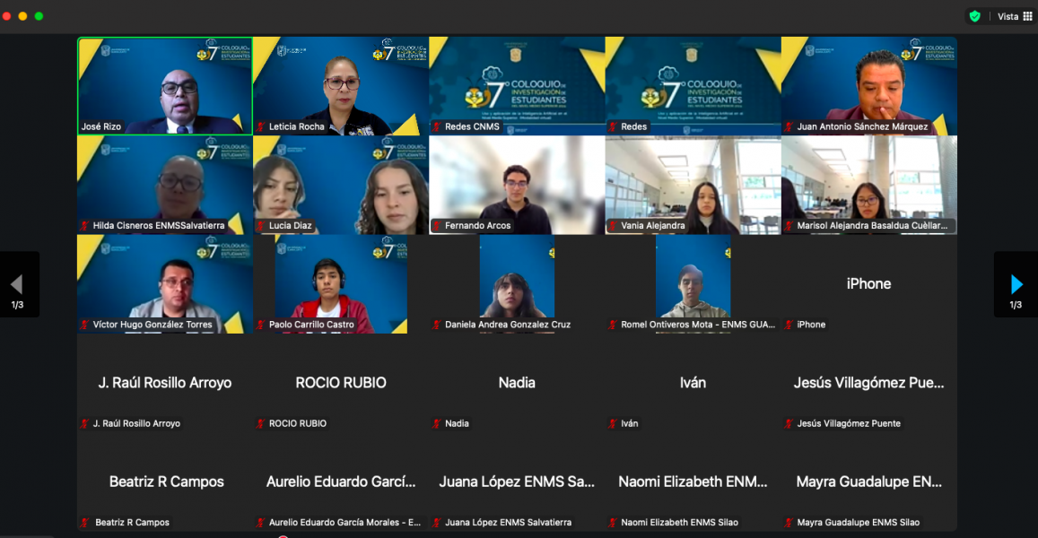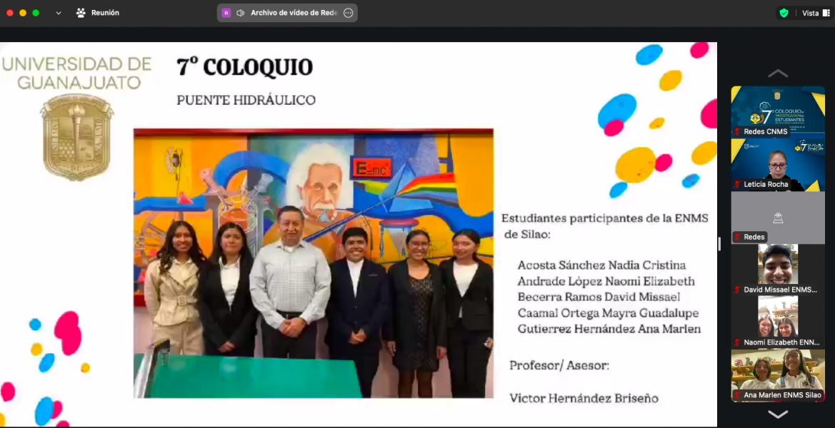 Guanajuato, Gto., a 30 de septiembre de 2024.- Por séptimo año consecutivo, y por quinta ocasión en modalidad virtual, se llevó a cabo a través de la plataforma Zoom y transmitido vía streaming a través de FB Live del CNMS, el 7º Coloquio de Investigación de Estudiantes del Colegio del Nivel Medio Superior (CNMS) de la Universidad de Guanajuato (UG).