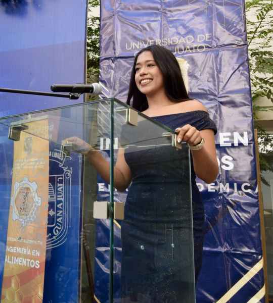 La alumna Carla Cecilia Almanza Ruiz, integrante del grupo BEE SAIA, hizo un llamado a aprender, crecer y celebrar a lo largo de estos 42 años de afrontar los cambios y desafíos de la industria alimentaria.