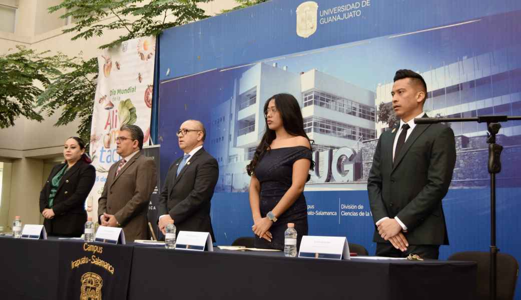 Los eventos conmemorativos fueron inaugurados por el Dr. José Eleazar Barboza Corona, Secretario Académico de la Universidad de Guanajuato, en representación de la Dra. Claudia Susana Gómez López, Rectora General de la UG. Como profesor investigador de ese Departamento, subrayó que el Departamento de Alimentos es uno de los más productivos dentro de la División de Ciencias de la Vida.
