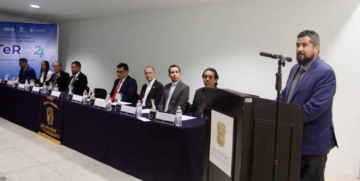 El Dr. Salvador Hernández Castro, Secretario General de la Universidad de Guanajuato, acudió a inaugurar el evento en representación de la Dra. Claudia Susana Gómez López, Rectora General de la UG. Mencionó que son muy importantes las tecnologías de la refrigeración que han tenido gran importancia a lo largo de la historia humana, pues han marcado aspectos de la evolución y cambios en la forma de alimentación.