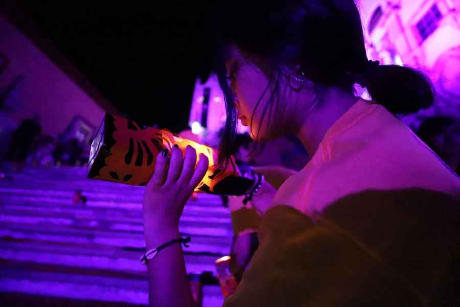 “Cuando ustedes ven la ofrenda colocada en la Escalinata, ese es el último paso de una serie de actividades que ya hemos realizado en la escuela. A cada grupo de estudiantes se les asigna un tramo en la Escalinata y deciden qué elementos se van a poner, qué dibujos van a utilizar, los símbolos, esto como parte de nuestro plan de estudios. Todo será entregado con un pequeño diseño en el que utilizarán aserrín, veladoras, café, comida, alfeñiques, calaveras de barro y papel picado”, detalló.