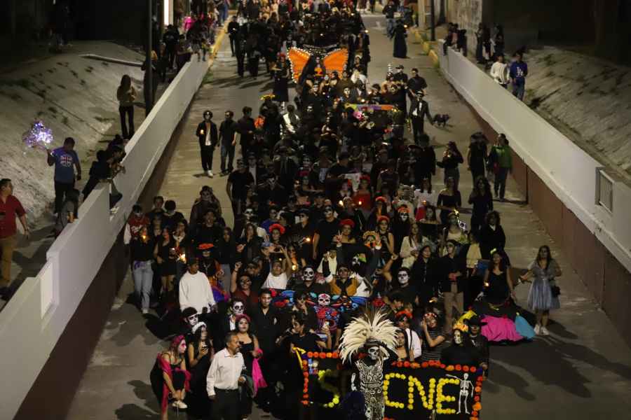 Este encuentro que resalta la cultura y tradición de México permite recordar a las y los seres queridos que han partido al Mictlán. Esta actividad que aporta momentos de alegría a la sociedad salmantina inició su tradicional recorrido en la Unidad II de la ENMS de Salamanca, hasta continuar por las principales avenidas de la ciudad, y finalizar en la Plaza Cívica Miguel Hidalgo.