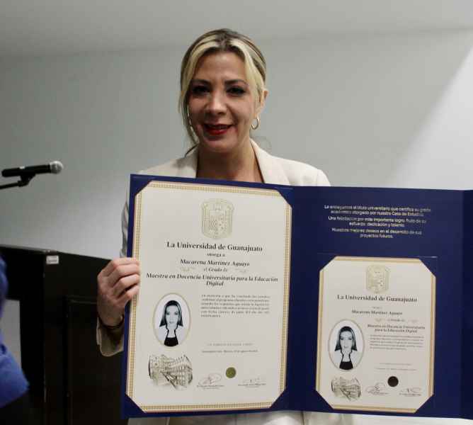 Salamanca, Gto. a 1 de noviembre de 2024.- Con el compromiso de fomentar ambientes digitales para la enseñanza-aprendizaje, veintidós egresadas y egresados de la segunda generación de la Maestría en Docencia Universitaria para la Educación Digital, recibieron su título por haber concluido satisfactoriamente el posgrado que ofrece la Universidad de Guanajuato (UG).