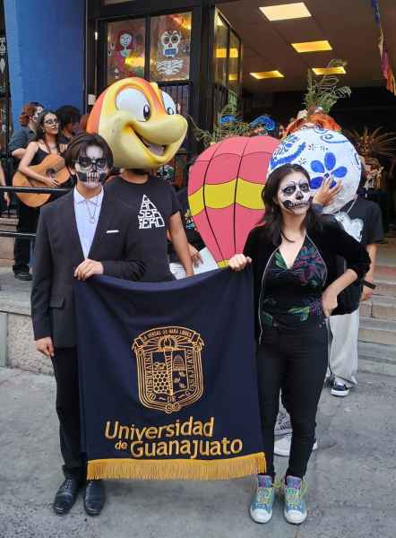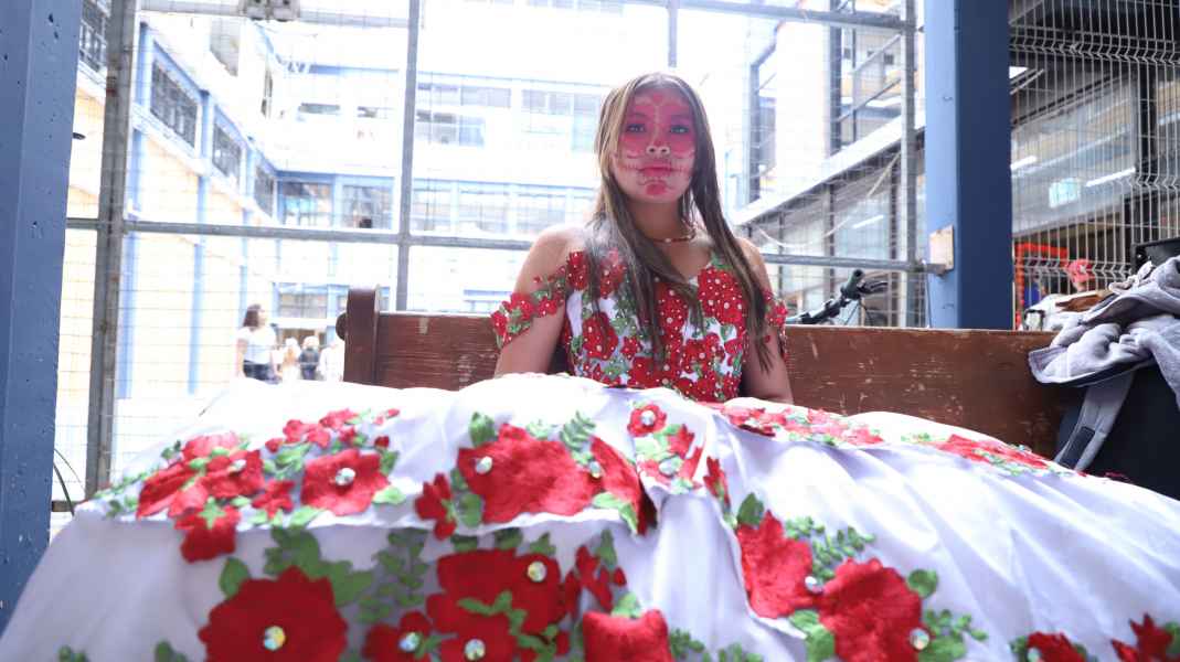 Por otra parte, en representación del equipo conformado por las y los jóvenes estudiantes Regina Celaya, Natalia Alcántara, Braulio Jaramillo, Jorge López y Damián Guerra, la estudiante Luz Angelli Muñoz, caracterizada de “Catrina”, explicó que su atuendo fue inspirado en las y los activistas, así como periodistas que al levantar la voz fueron silenciadas y silenciados con la muerte.