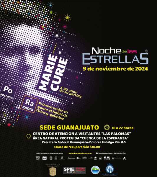 En esta ocasión, la “Noche de las Estrellas” estará dedicada a celebrar la vida y obra de Marie Curie, la primera persona y única mujer hasta hoy en ganar dos Premios Nobel, uno de Física y uno de Química.