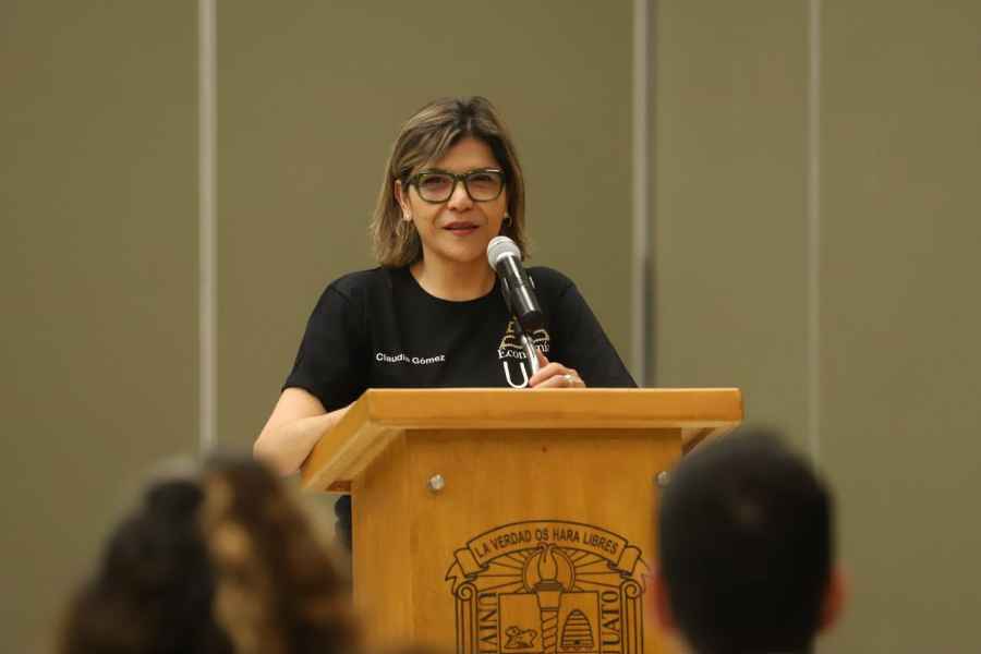 ¡Soy economista, orgullosamente economista! expresó con entusiasmo la Rectora General de la Universidad de Guanajuato, Dra. Claudia Susana Gómez López, quien fue invitada especial por las y los jóvenes universitarios.