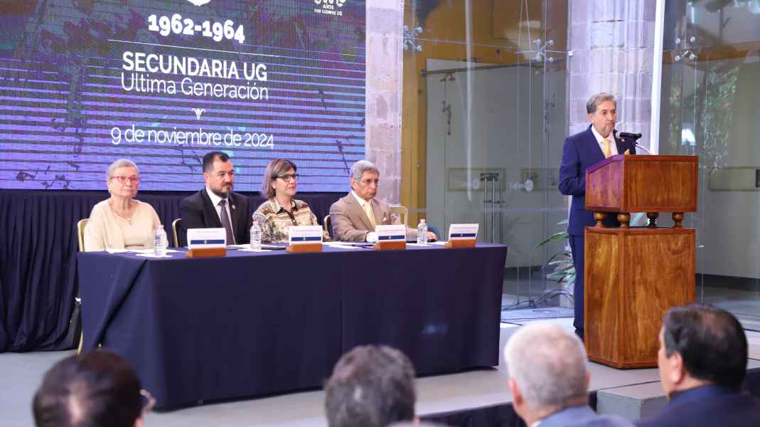 Héctor Guillermo Mosqueda Ramos dio lectura a la síntesis monográfica sobre la educación secundaria desde el Colegio del Estado, ahora Universidad de Guanajuato, de 1828 a 1964, siendo él una de las últimas personas que egresarían con dicho sello universitario. Sus palabras recordaron a quienes fueron pieza fundamental durante su formación básica, maestras y maestros que desde las aulas impartieron conocimientos en materias como Cívica, Historia, Literatura, Ciencias naturales, Ciencias exactas, Geografía, entre otras, acompañadas de grandes aprendizajes.