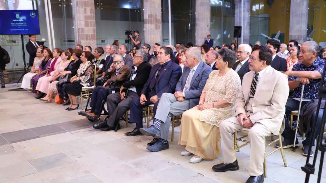 "Veo en este espacio que el amor por la Universidad se hereda y eso han hecho ustedes no solamente por quienes han continuado con sus estudios en la UG, sino con sus hijos e hijas, nietas, nietos, amigas, amigos que veo aquí. Son universitarios, universitarias de distintas disciplinas, de distintas generaciones; esa gratitud que tienen ustedes por la Universidad de Guanajuato con la que hoy regresan a decir gracias por lo que me diste, gracias por lo que significaste y, en gran parte, gracias por lo que soy".