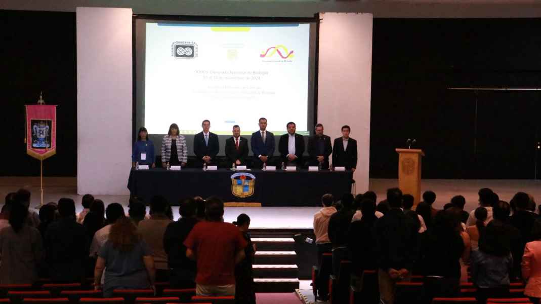 Guanajuato, Gto., a 11 de noviembre de 2024.- Del 10 al 14 de noviembre, se realiza, en la Universidad de Guanajuato (UG), la XXXIV Olimpiada Nacional de Biología 2024, organizada por la Sociedad Mexicana de Ciencias con la finalidad de promover las ciencias naturales entre los estudiantes del nivel medio superior y para identificar a jóvenes talento para impulsar su formación en esta rama del conocimiento, garantizando así su desarrollo académico y profesional.