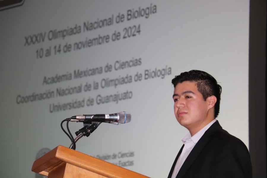 También ofreció un mensaje Alan Daniel González Novoa, alumno de 1er semestre de la licenciatura en Biología Experimental de la UG y medallista de plata de la XXXIII Olimpiada Nacional de Biología 2023, quien exhortó a las y los participantes a dejar en alto a sus instituciones educativas.
