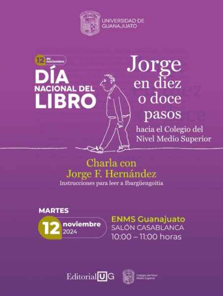 Guanajuato, Gto., a 12 de noviembre de 2024.- Para celebrar el Día Nacional del Libro, el Programa Editorial Universitario (PEU) de la Universidad de Guanajuato (UG) preparó la presentación del libro Jorge en 10 o 12 pasos. Instrucciones para leer a Jorge Ibargüengoitia, del reconocido ensayista Jorge F. Hernández, dirigido al público infantil y juvenil, en tres Escuelas de Nivel Medio Superior (ENMS).