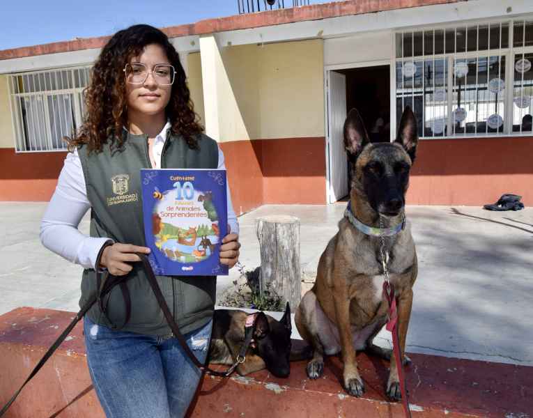 León, Gto. a 19 de noviembre de 2024.- Con el proyecto de servicio social universitario llamado “LeaKN”, se brinda terapia asistida con perros para fomentar la lectura en niñas y niños de primaria, por parte de una profesora y sus estudiantes del programa de Licenciatura en Medicina Veterinaria y Zootecnia, del Campus Irapuato-Salamanca de la Universidad de Guanajuato (UG).