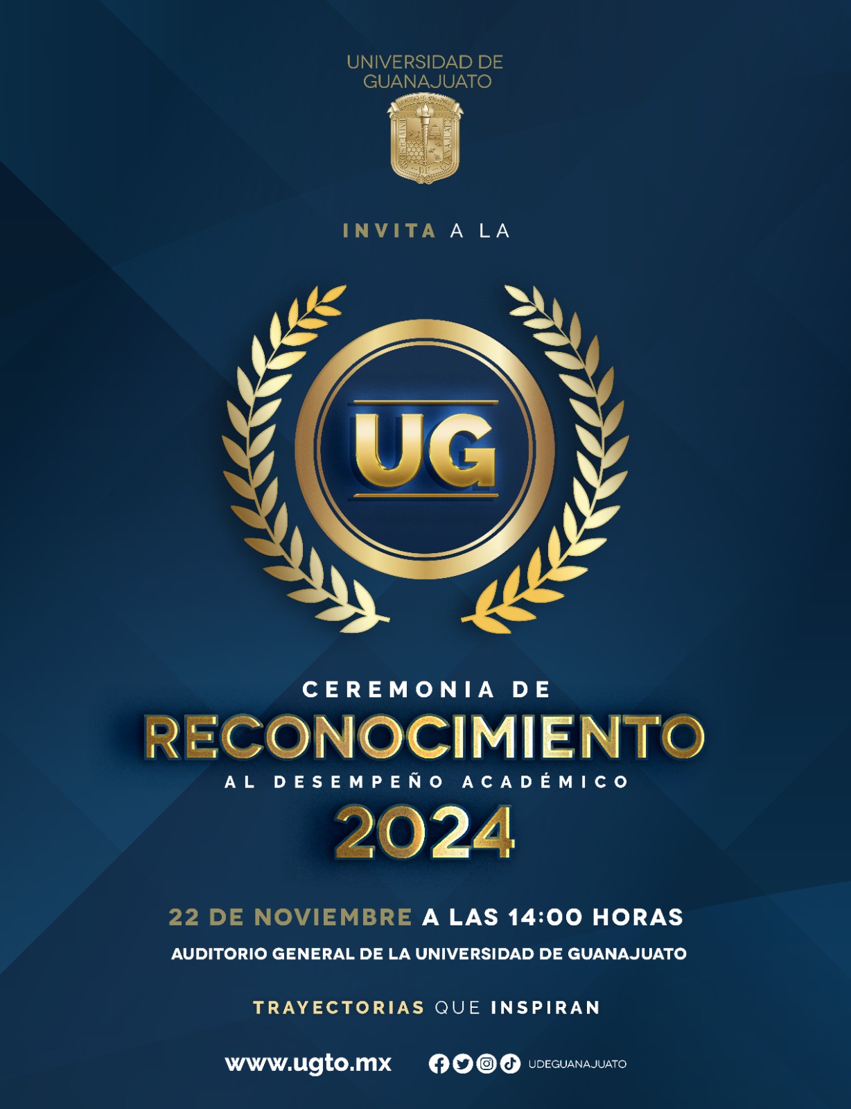 El próximo viernes 22 se realizará la primera fase con el Reconocimiento al Aprovechamiento Académico por Trayectoria en el Auditorio General de la UG. Posteriormente, se continuará la segunda fase con las ceremonias de Reconocimiento al Aprovechamiento Académico por Periodo Anual en el siguiente orden: en el Campus Irapuato – Salamanca se llevará a cabo el 27 de noviembre a las 10:00 horas en la Explanada Principal de la DICIS; en el Campus Celaya – Salvatierra se desarrollará el 26 de noviembre en el Domo de la Biblioteca de la Sede Juan Pablo II; en el Campus León se realizará el 29 de noviembre a las 12:00 horas en el auditorio Jorge Ibargüengoitia y para el Campus Guanajuato, se realizará la ceremonia el próximo 6 de diciembre en las Aulas Magnas de la Sede Marfil.