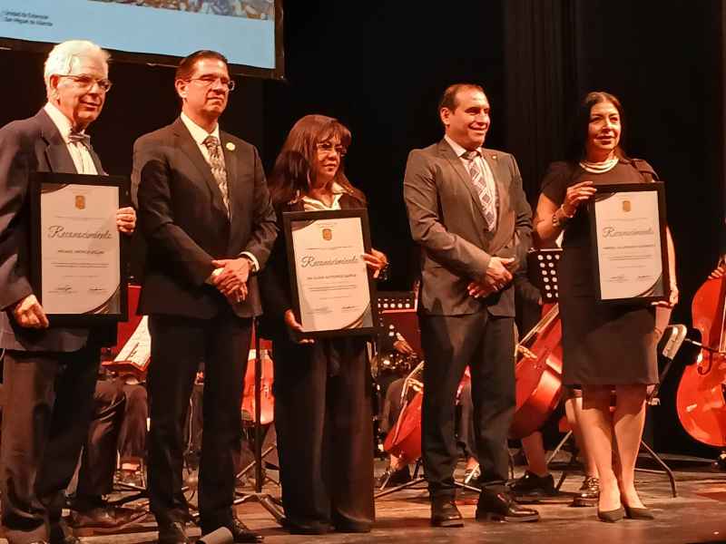 Hizo igualmente un reconocimiento público al ex Rector de la UG, el Mtro. Luis Felipe Sánchez Hernández, presente en la ceremonia, porque una institución educativa no se hace de la noche a la mañana, dijo, sino con el esfuerzo de mucha gente a través de los años .