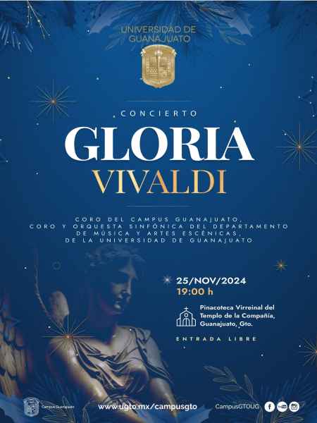 Guanajuato, Gto., a 22 de noviembre de 2024.- Bajo el programa titulado “Gloria”, por la obra de Vivaldi, se presentarán el Coro del Campus Guanajuato, Coro y Orquesta Sinfónica del Departamento de Música y Artes Escénicas de la Universidad de Guanajuato (UG) este 25 de noviembre a las 19:00 horas en la Pinacoteca Virreinal del Templo de la Compañía, evento de entrada libre como parte de la Cartelera Cultural de “La Colmena”.