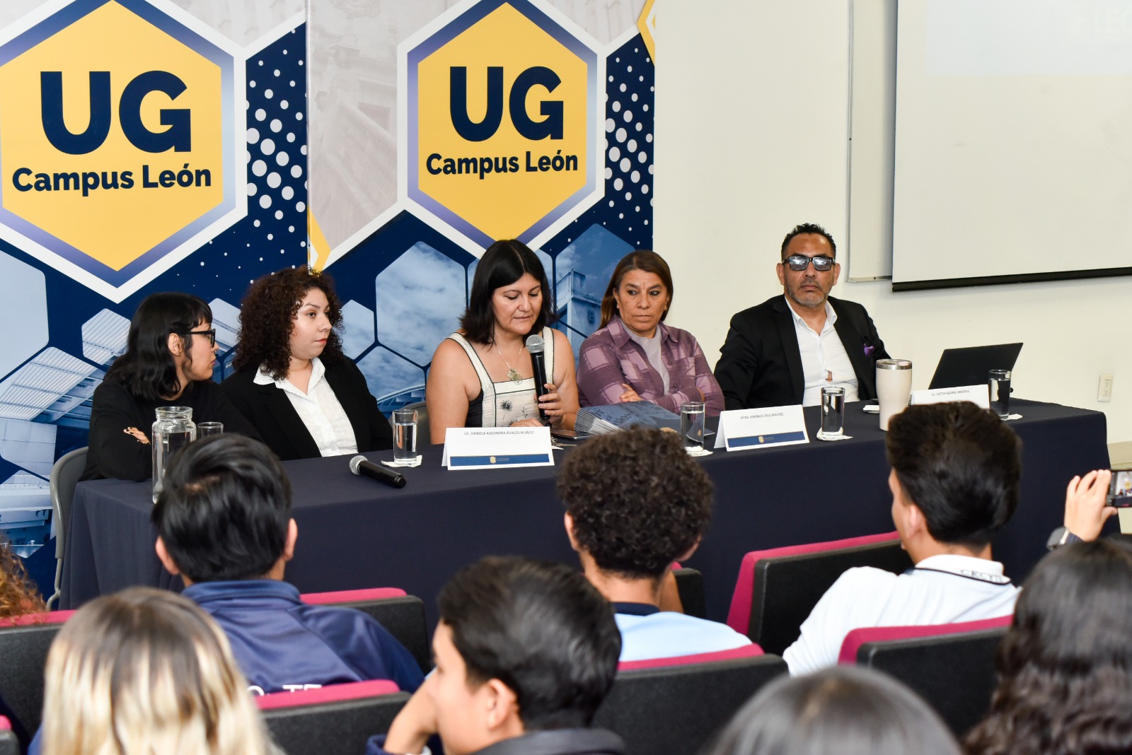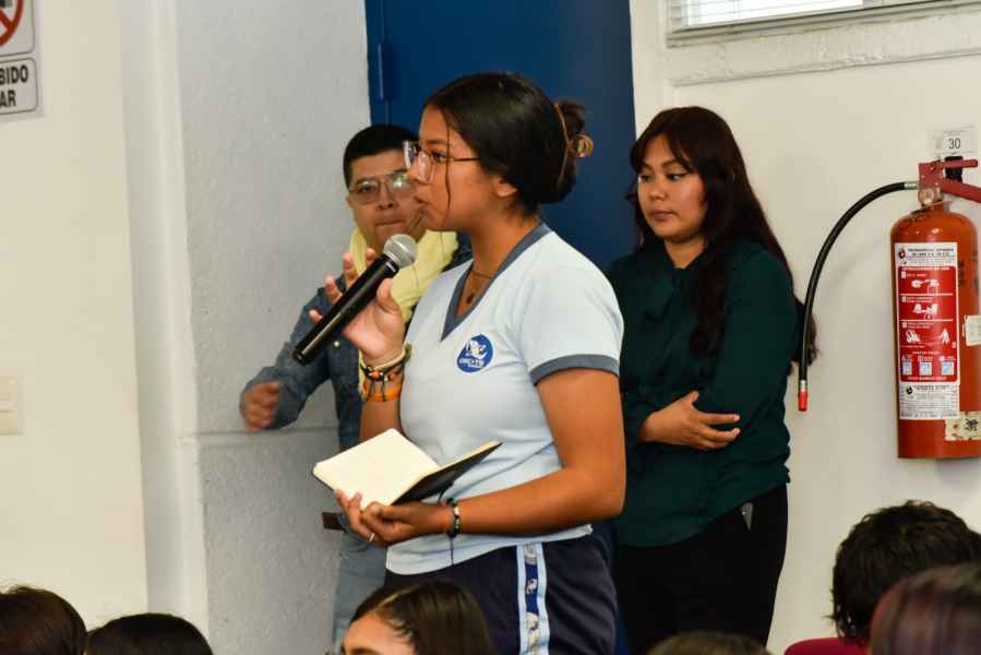 Entre el público estuvieron presentes estudiantes del Centro de Estudios Científicos y Tecnológicos del Estado de Guanajuato (CECyTE), para que desde edades tempranas puedan reconocer la violencia dentro y fuera de sus aulas y ser portavoces de la lucha contra la violencia a las mujeres.