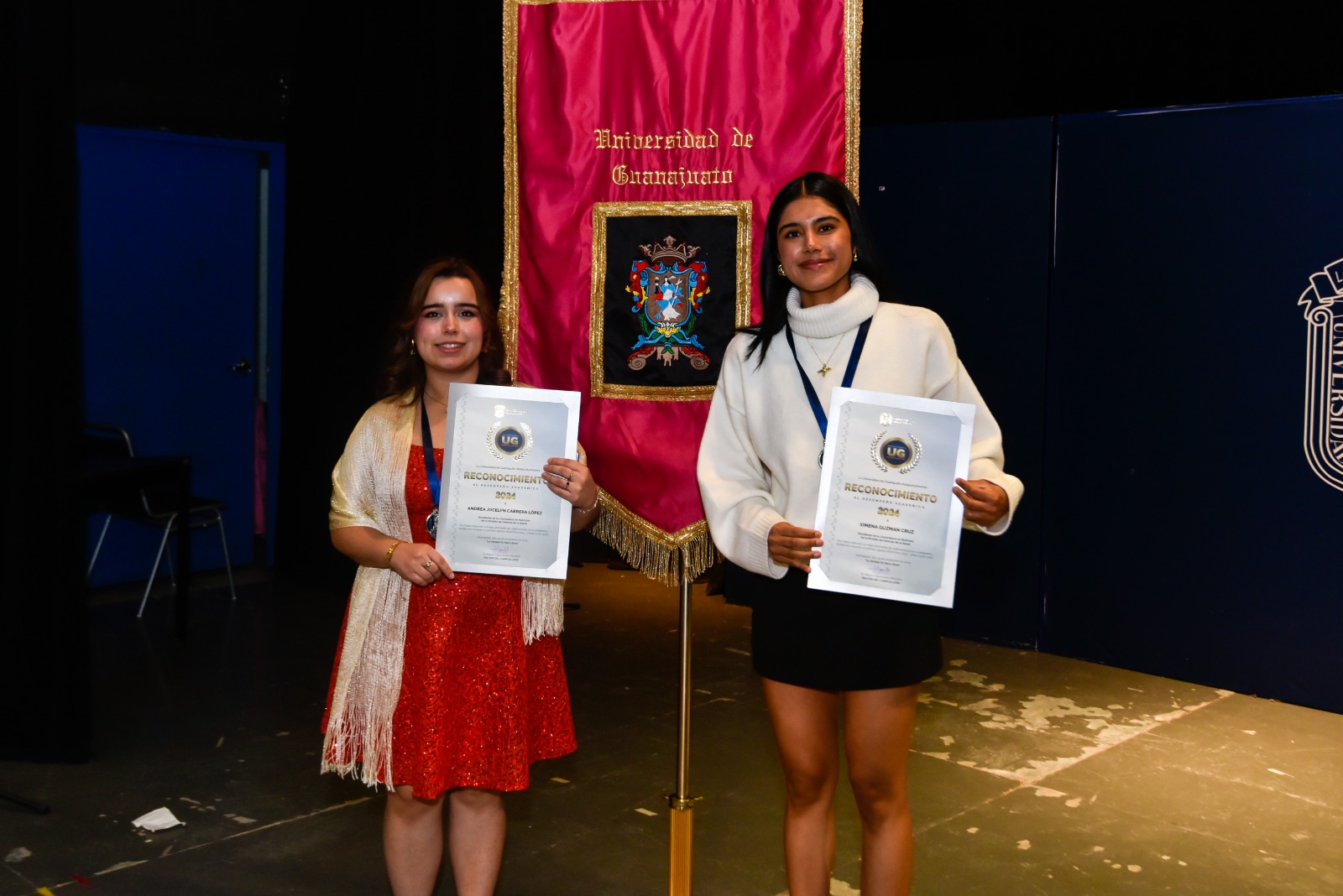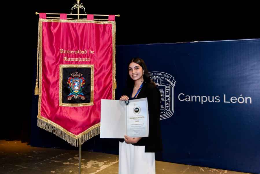 León, Gto., a 28 de noviembre de 2024.- El Campus León (CLE) de la Universidad de Guanajuato (UG) realizó la Ceremonia de Reconocimiento al Desempeño Académico 2024, a la comunidad estudiantil que obtuvo los mejores promedios anuales en los semestres agosto-diciembre 2023 y enero-junio 2024.