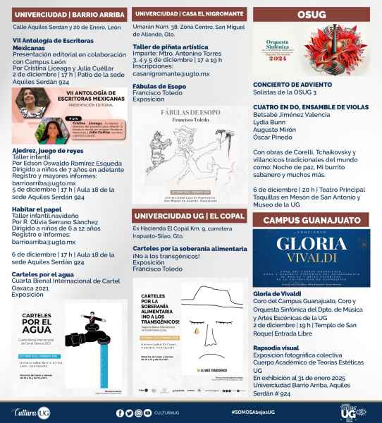Programa sujeto a cambios sin previo aviso. Más información en www.cultura.ugto.mx