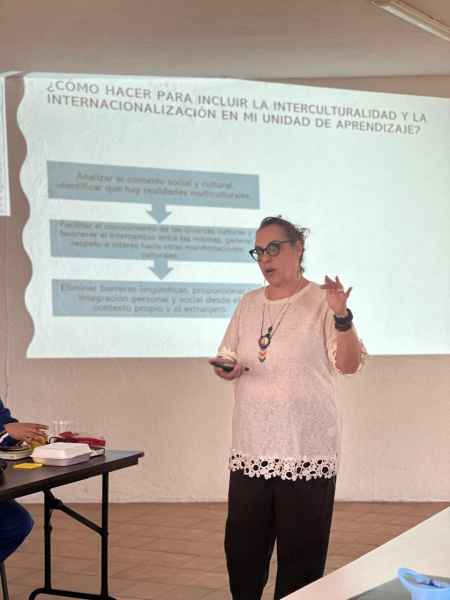 El taller inaugural, "Interculturalidad e Internacionalización en mi Unidad de Aprendizaje", fue impartido por la Mtra. María Adriana Aguilera Arrieta, Directora de Internacionalización de la Universidad de Guanajuato.