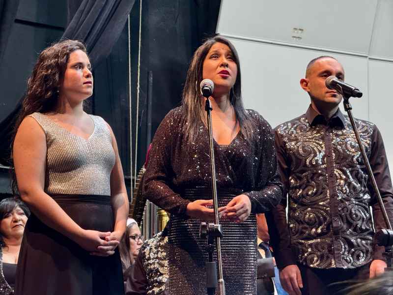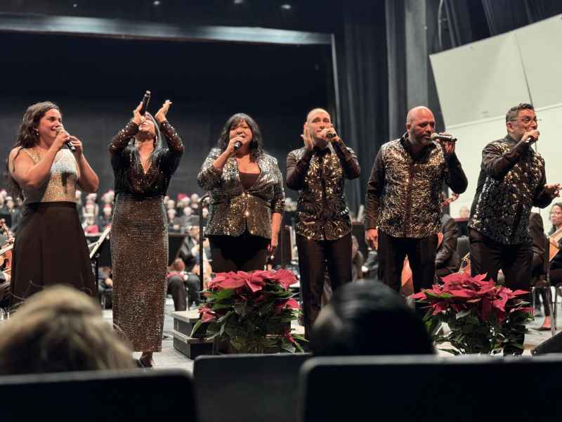A ello, siguieron tres villancicos a capella, donde destacó la poderosa polifonía del Ensamble Vocal Voz en punto: “El nacimiento” (José Galván), “El tilingo navideño” (son jarocho) y “El intercambio” (José Galván).