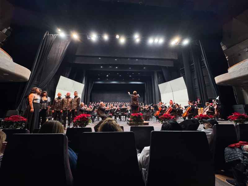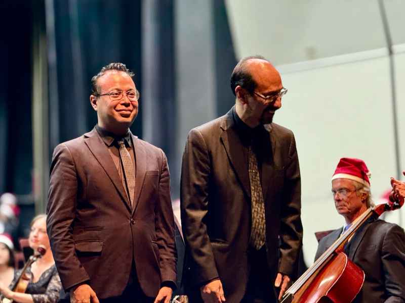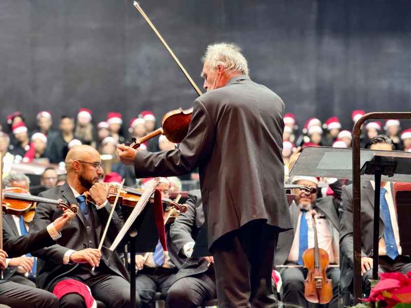 Luego del intermedio, la OSUG y el Ensamble Coral de la UG interpretaron Festival de Navidad, creación del estadounidense Leroy Anderson en 1950, en cuya música puede apreciarse un toque ‘pop’ de aquella época y un contagioso humor al emplear sonidos y ritmos de ajenos al estilo musical de las piezas festivas tradicionales, como relojes o máquinas.