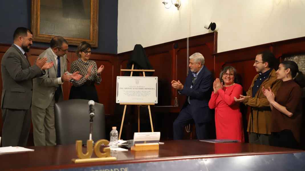 Tras la culminación de la Sesión Solemne, se develó una placa conmemorativa que rinde homenaje al Ing. Miguel Izaguirre Mendoza, la cual fue colocada en la explanada del Observatorio Astronómico UG, ubicado en el quinto piso del Edificio Central de la UG.
