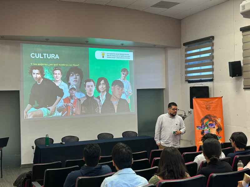 Desde la Sede Marfil del Campus Guanajuato, el Mtro. José Pérez Martínez entabló una nutrida conversación con estudiantes de la DCEA, misma que comenzó con el análisis de la perspectiva cultural y ejemplificó con múltiples expresiones artísticas o de entretenimiento que emplean personajes de ficción de sexo masculino, tales como superhéroes, y sostuvo que “todos los ámbitos están rodeados de este espectro donde no mencionamos mujeres y viene el bombardeo de las características que comparten. Ya sea de manera consciente o inconsciente, se crea en los hombres este ficticio de aspirar al cuerpo hegemónico que puede otorgar otra clase de privilegios”, indicó el Mtro. Pérez Martínez.