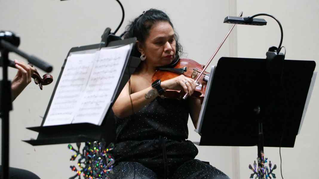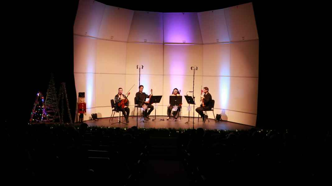 Guanajuato, Gto., a 07 de diciembre de 2024.- Con obras de Corelli, Tchaikovsky y villancicos tradicionales del mundo, como “Noche de paz”, se presentó el “Concierto de Adviento” de Cuatro en Do, Ensamble de violas conformado por integrantes de la Orquesta Sinfónica de la Universidad de Guanajuato (OSUG).