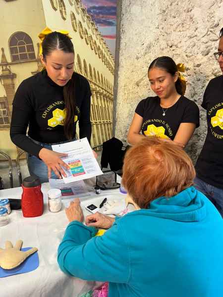 Guanajuato, Gto., a 09 de diciembre de 2024.- Con la intención de promover conductas y hábitos cardiosaludables entre la población, la comunidad estudiantil de la Licenciatura en Enfermería y Obstetricia de la División de Ciencias Naturales y Exactas del Campus Guanajuato (DCNE), ha llevado a cabo ocho ediciones de la CardioDiabeti Feria en comunidades aledañas y en espacios universitarios, lo que se traduce en una participación de más de quinientas personas interesadas en mejorar su integridad física.