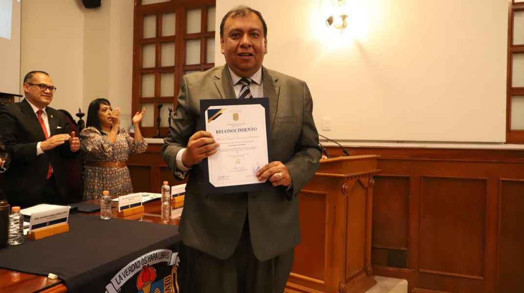 “Gracias a la Universidad de Guanajuato, gracias al profesorado que nos guio y de forma bondadosa nos compartió sus conocimientos, experiencias y valores para ser lo que ahora somos. Gracias a nuestras familias por su incondicional apoyo, principalmente a quienes veníamos de otros rumbos. Gracias a la vida por darnos la oportunidad de encontrar otra familia en esta generación 1990-1994 de la Licenciatura en Derecho y exhorto a las compañeras y compañeros a seguir ejerciendo la profesión de la abogacía con valentía, pasión, pero sobre todo con valores, esos que nos caracterizan para seguir llamándonos abejas nacidas en este panal, en esta colmena universitaria, nuestra querida Universidad de Guanajuato”, externó el abogado José Ricardo Aguilar Torres.