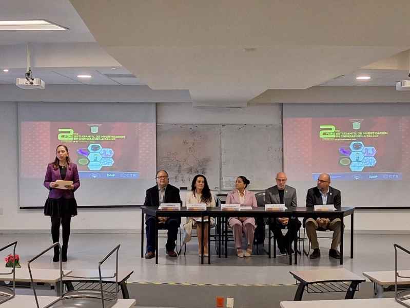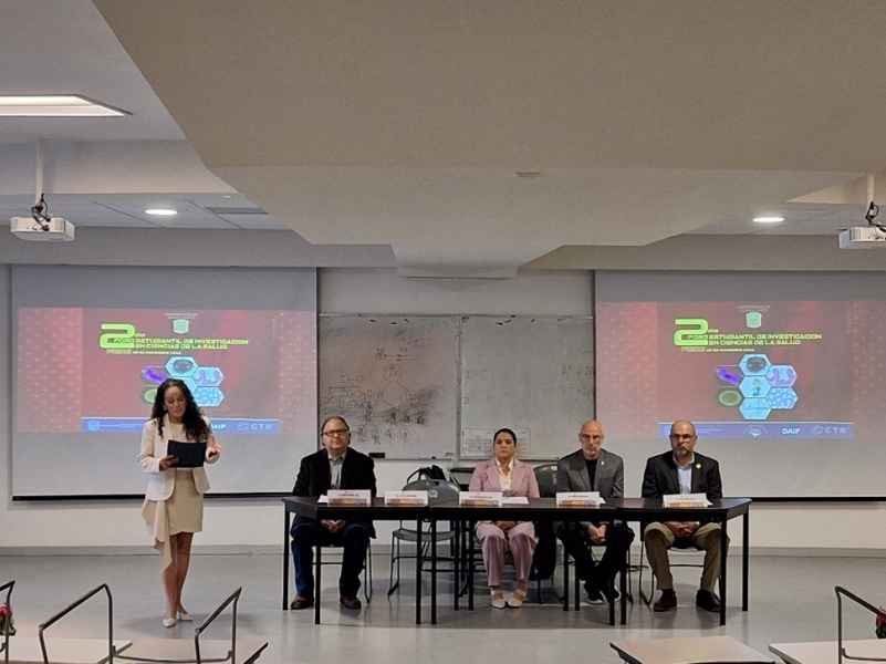 Como integrantes de la mesa del presídium, estuvieron presentes la Coordinadora General de Desarrollo Académico del Campus León, Dra. Ana Lilia González Yebra en representación del Rector del Campus León, Dr. Mauro Napsuciale Mendívil; la Directora de la División de Ciencias de la Salud, Dra. Luz Elvia Vera Becerra; el Coordinador del programa educativo de Médico Cirujano, Dr. Francisco Javier Solorzano Zepeda; el Coordinador de la Maestría en Investigación Clínica, Dr. Jesús Álvarez Canales, y uno de los integrantes del cuerpo académico de Biomedicina Traslacional, el Dr. Marco Antonio Hernández Luna.